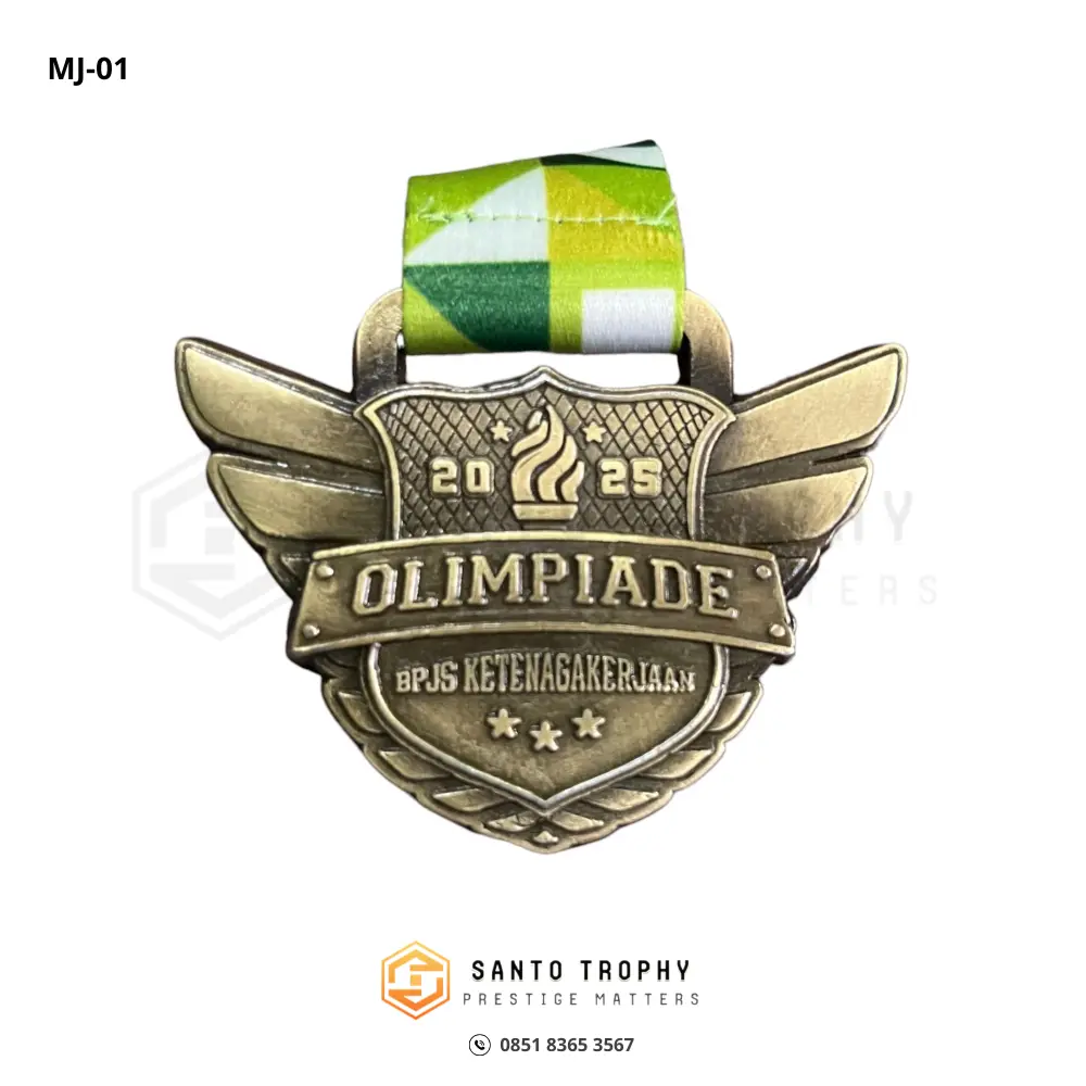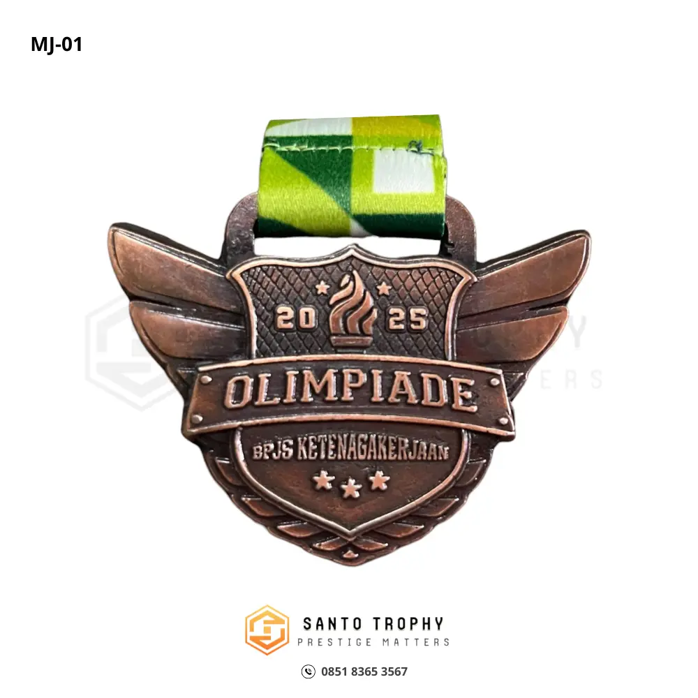 Medali Kejuaraan BPJS Ketenagakerjaan 2025 kami rancang khusus sebagai simbol pencapaian dalam ajang Olimpiade internal. Kami memakai zinc alloy premium sehingga medali tampil kuat, tahan lama, dan elegan ketika peserta mengenakannya.